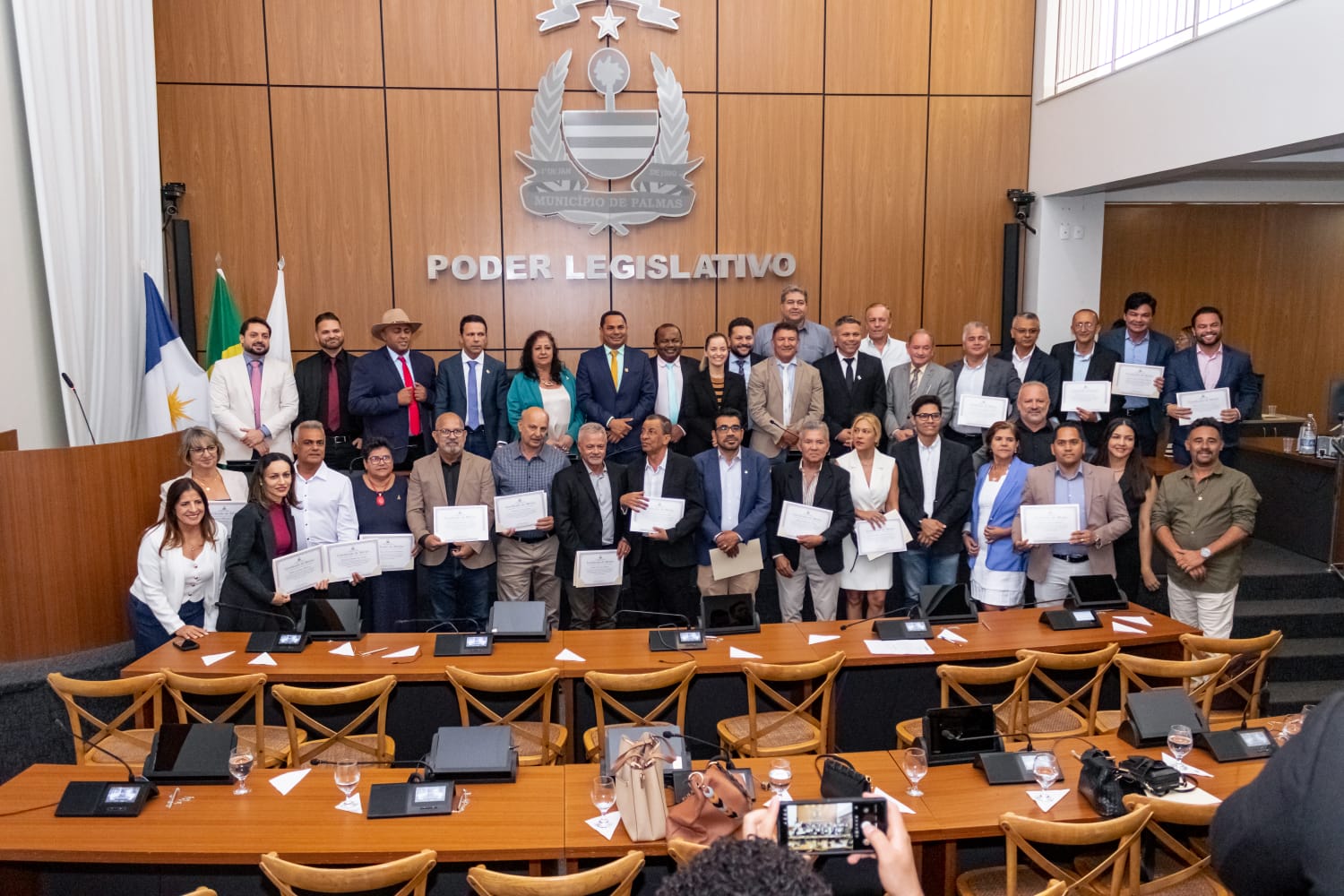 A Câmara de Vereadores de Palmas recebeu nesta quinta-feira, 04, corretores e corretoras de imóveis para Sessão Solene em homenagem aos profissionais. Solicitada pelo vereador Josmundo Vila Nova, a sessão foi um momento de enaltecimento e reconhecimento da profissão, presidida pelo próprio vereador. Conforme Josmundo, a profissão carrega em si a nobre missão de realizar sonhos, como a casa própria. 29 corretores foram homenageados pelos vereadores palmenses.